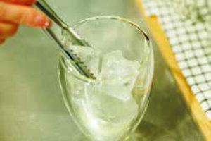 2.炭酸水を静かに注ぐ。