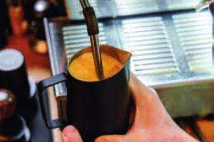 エスプレッソマシンで2を5〜10秒スチームし、空気を含ませる。温める目的ではなく、空気を含ませるためにスチームする。