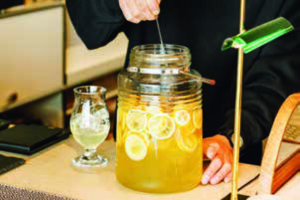 - グラスに氷、レモンシロップ、炭酸水を順に入れ、軽くステアする。