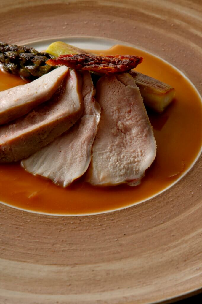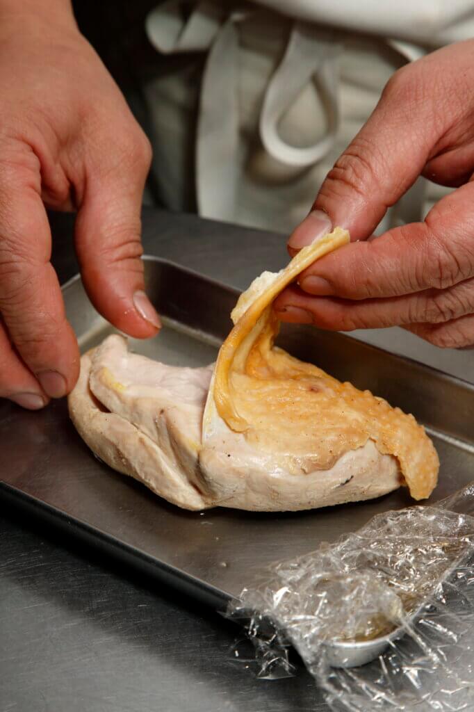 低温のやさしい火入れでジューシーに ホロホロ鳥胸肉のポシェ【肉の火入れ技術④】