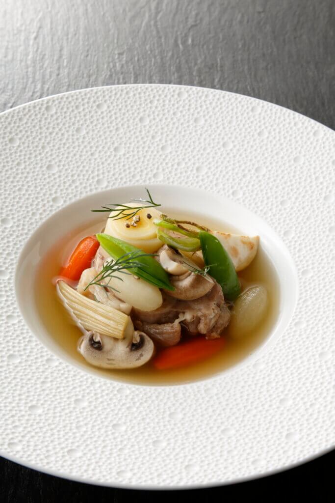 日本の水質を理解し、常識にとらわれず独自のスタイルを探究する姿勢が、透明度が高く、澄んだ味わいのクリアなブイヨンを完成させているのです。