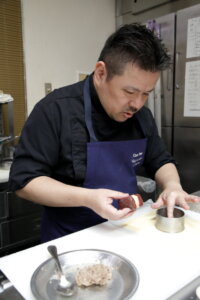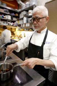 井上氏の片腕として長年シェ・イノを支えてきた古賀シェフは、25歳でソーシエに抜擢されて以来、ソース・ペリグーを一手に担ってきました。