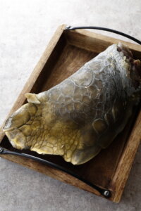 一方、ウミガメはフランスでも古くから高級食材として親しまれ、コンソメスープや煮込み料理に使われてきました。いまや幻になりつつあるこの食文化と小笠原の持続可能な漁業を伝えるべく、ラチュレでは積極的に小笠原産のウミガメを使用しています。