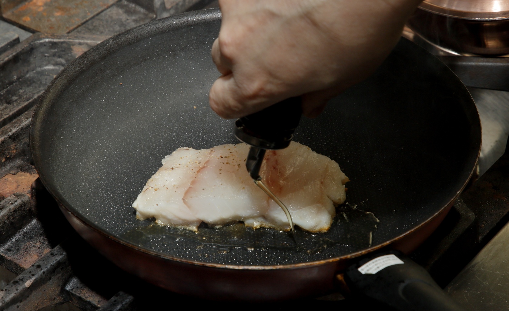 ポワレとロティを組み合わせたハタの複合火入れ術【魚介の火入れ技術④】