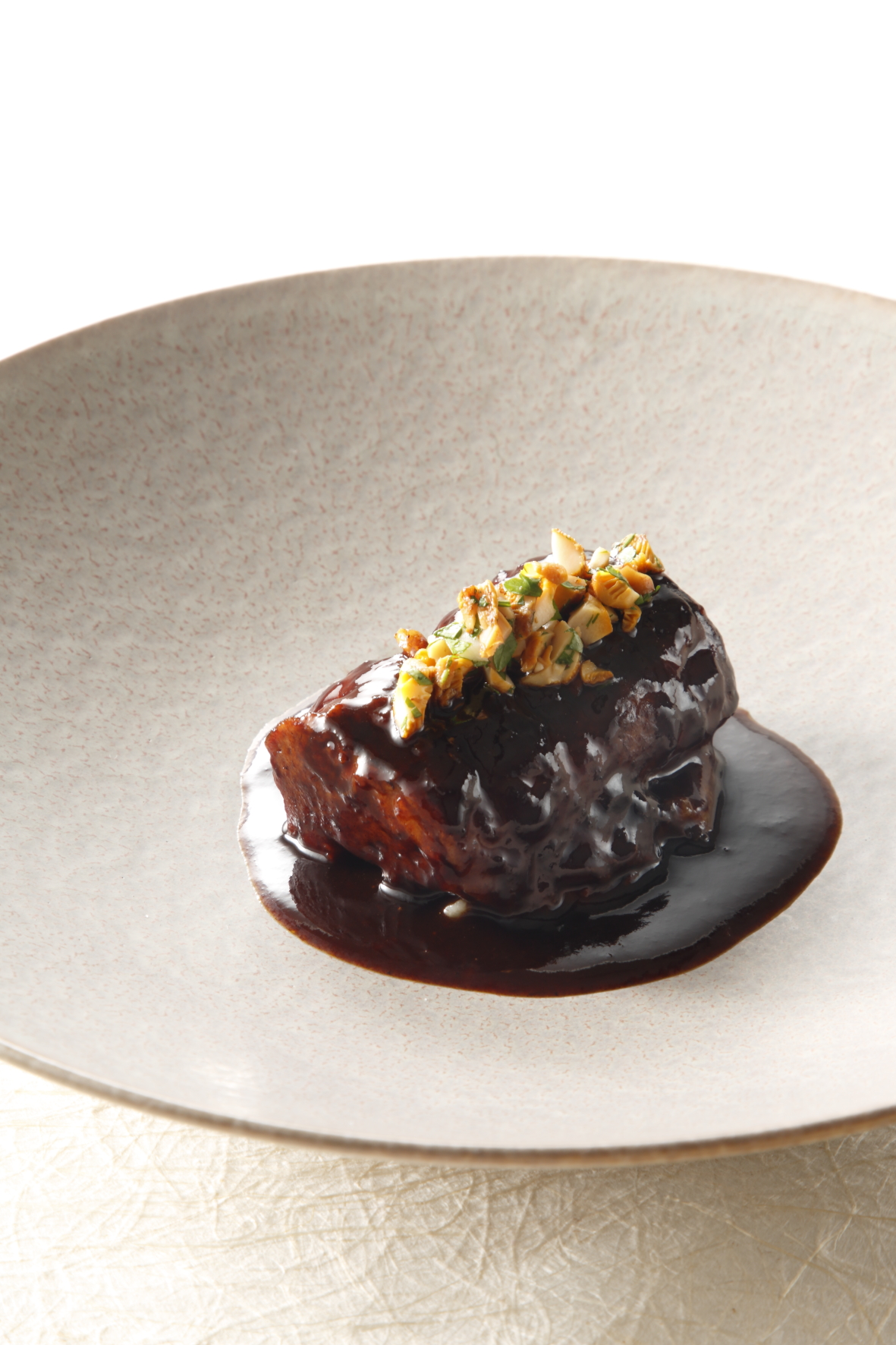 フランスの伝統的なマトロートの形を残しつつ、日本料理の繊細な技術で臭みを取り除いた谷シェフのブレゼ。二つの料理文化の長所を融合させた、日本ならではのフランス料理です。