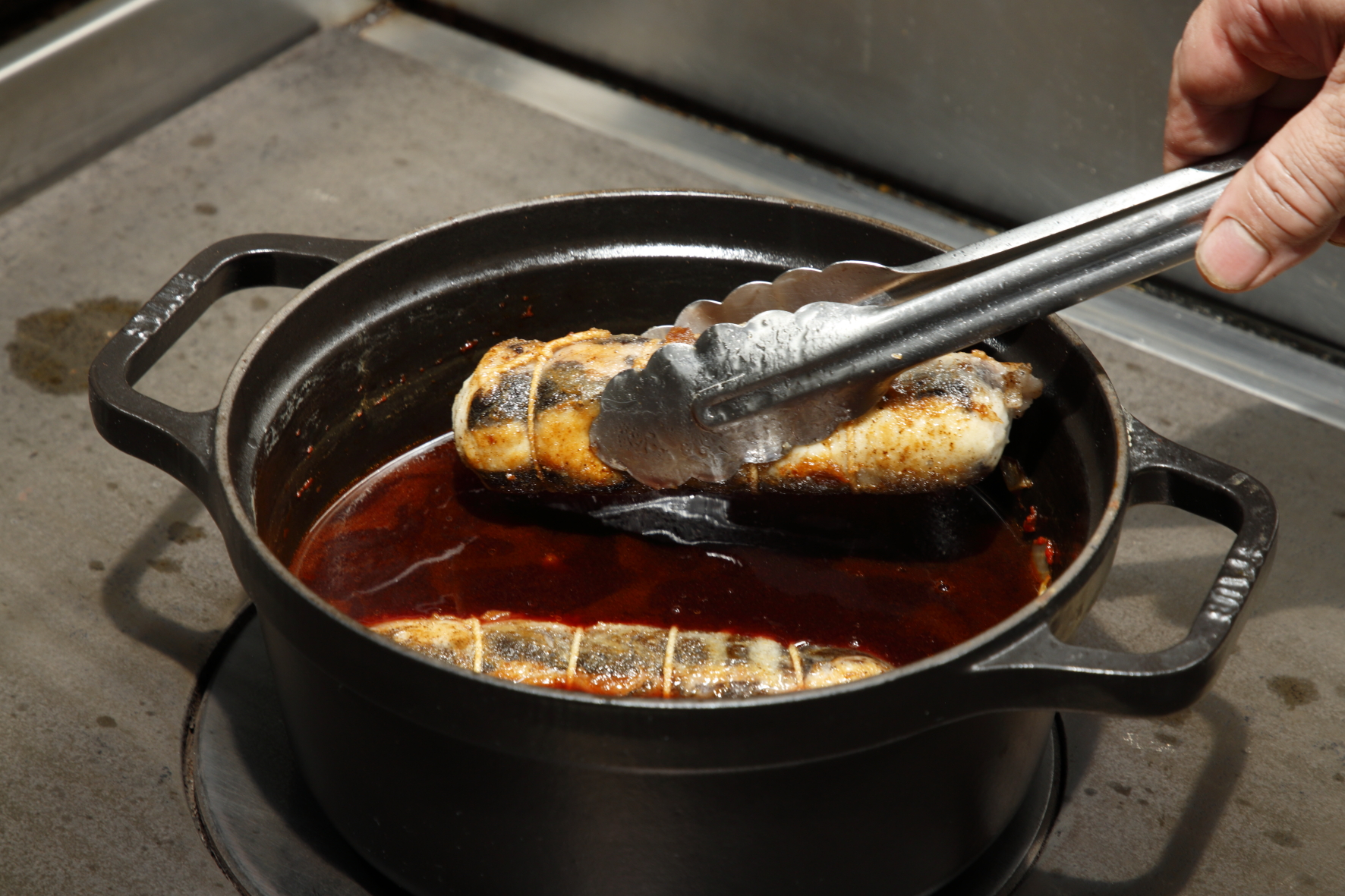 そんな中で、谷シェフが注目したのがウナギです。長時間煮てもうま味が抜けないどころかさらに凝縮し、とろけるような食感に磨きがかかる。煮ながら味を含ませておいしくなる魚として、ウナギは最高峰だと谷シェフは言います。