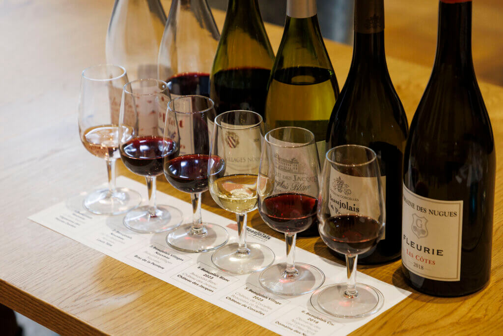 イベントでは、世界的ソムリエの**大越基裕氏**によるテイスティングセッションも実施。赤2種・ロゼ1種のヌーヴォーに加え、赤・白・クリュ3種のワインが試飲され、参加者はボジョレーの多様性と地域特性を体感しました。ワインに合わせた食事も提供され、会場は大いに盛り上がりました。