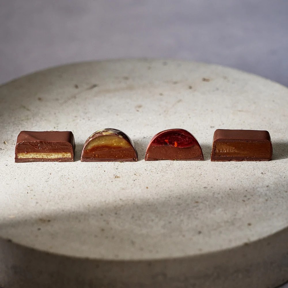 低糖質やヴィーガンなど、4 種のタブレットチョコレートが新登場。表参道店のトレンドマークとも言える、ヘリンボーンの木目をイメージしたオリジナルチョコレートです。