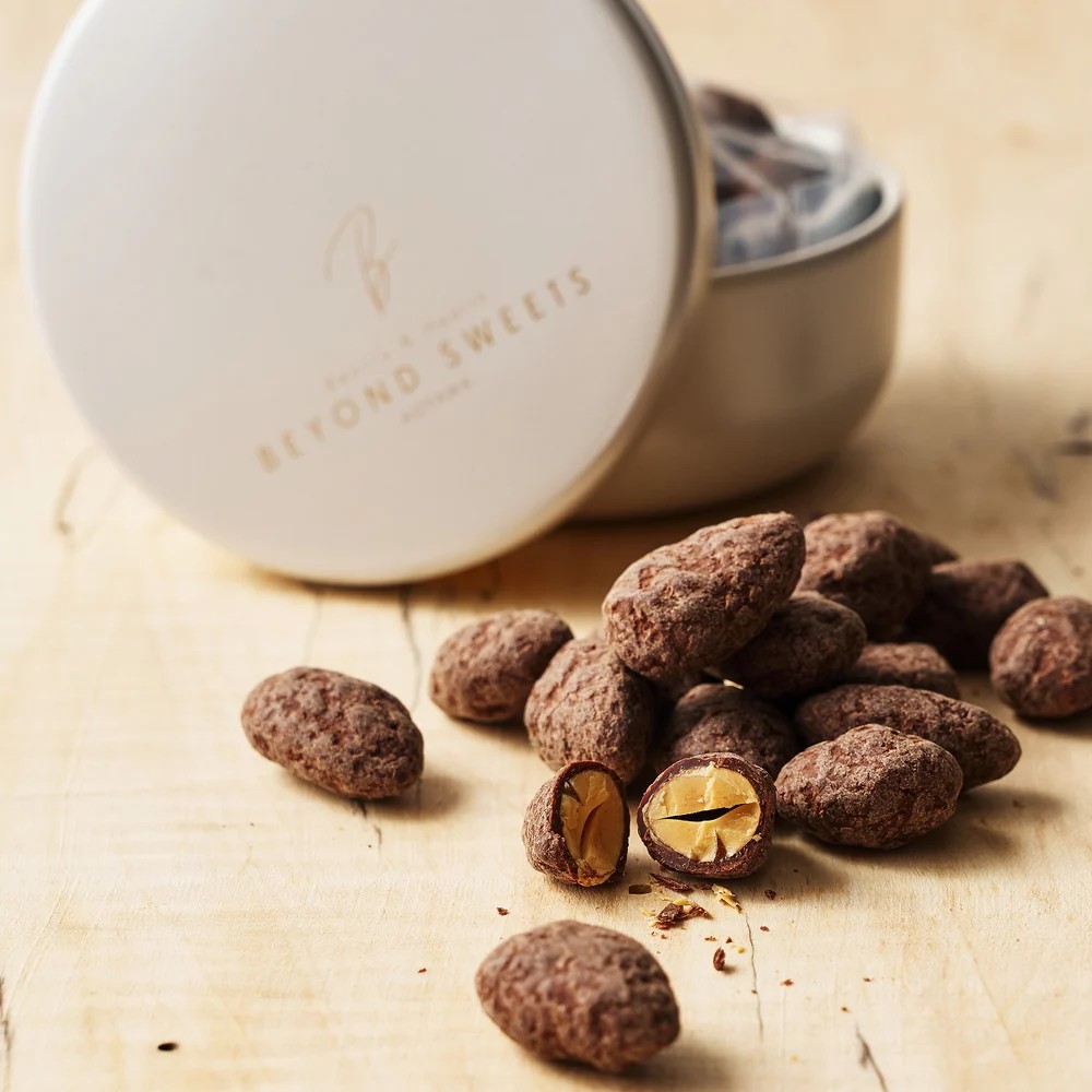 小麦・白砂糖は一切使用しない糖質5g 以下(30g あたり)のアーモンドチョコレート。厳選した高品質なカカオと羅漢果(らかんか)という果実からとれる天然の甘味料を合わせた自家製チョコレートに、香ばしくしっかりとローストしたアーモンドを合わせたカリっと香ばしくて甘い低糖質・低GI チョコレートです。