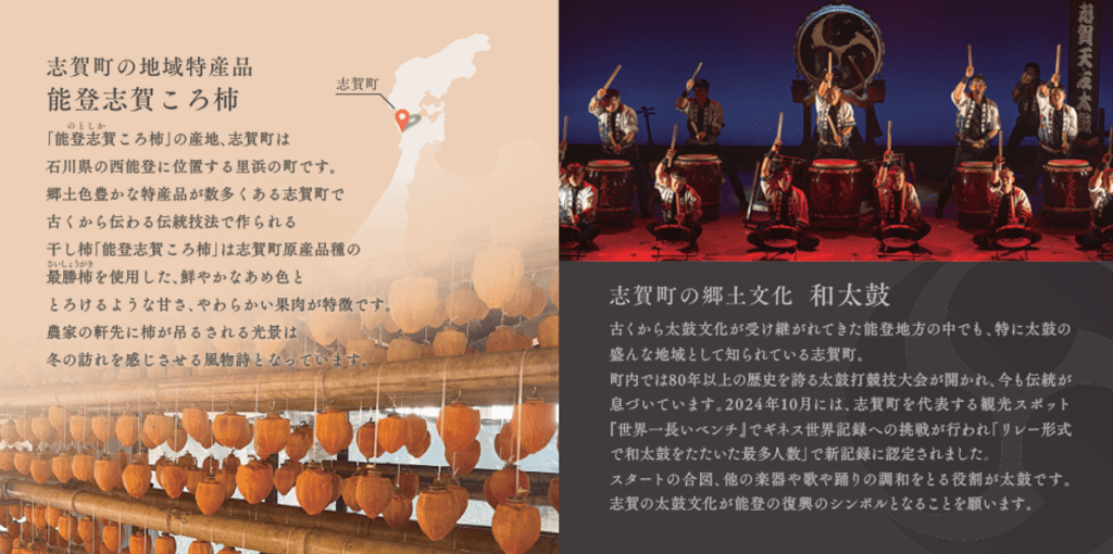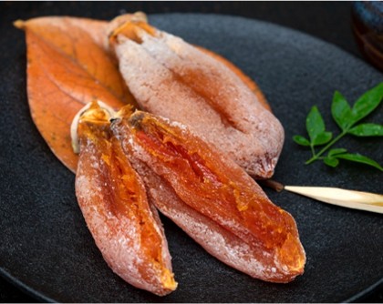 「能登志賀ころ柿」は、志賀町(しかまち)原産の品種「最勝柿(さいしょうかき)」を使って、伝統技法で作られる干し柿のこと、400年の歴史がある干し柿です。丁寧な手作業と温度管理により、鮮やかなあめ色で、トロリとした食感、濃厚な味わいが特徴です。