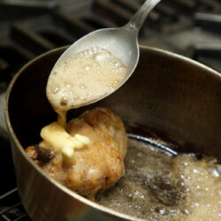 低温のやさしい火入れでジューシーに ホロホロ鳥胸肉のポシェ【肉の火入れ技術④】