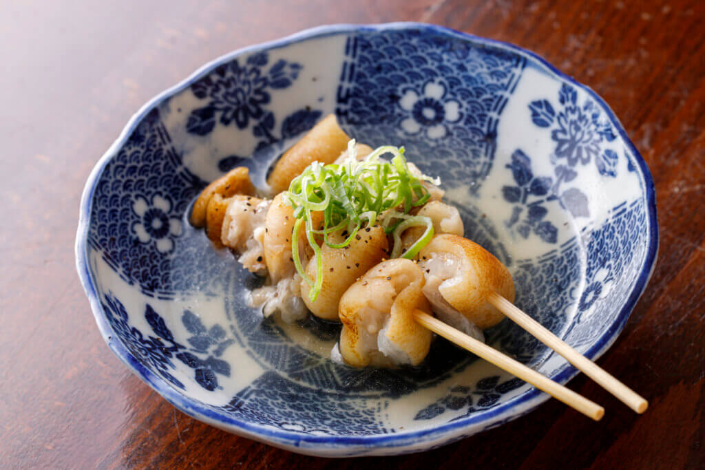 串に刺した豚足を使ったユニークな肉おでん。豚足は美容効果があるといわれるコラーゲンが豊富なことから、「美人串」とネーミング。女性客を中心に人気を集めています。下処理した豚足はほどよく柔らかくて臭みもなく、独特の食感が魅力に。おでんだしで味を含めたのち、塩・胡椒を直接かけて味を強めています。 |
