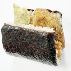 意外や意外!焼きサバに明太子を合わせると、旨味と辛味など、さまざまな味が溢れてきて、見た目以上に「お得」な味わいとなっています。普通のおにぎりにもう飽きた!という人でも満足できること間違いなし。