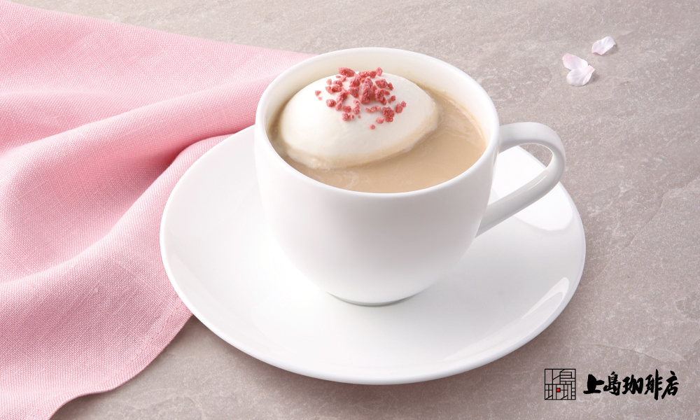 上島珈琲店自慢のミルク珈琲に、関山桜のシロップと和三蜜糖を丁寧に重ねることで、甘味と香りが調和した、まるで上質な和菓子のような味わいに仕上げています。